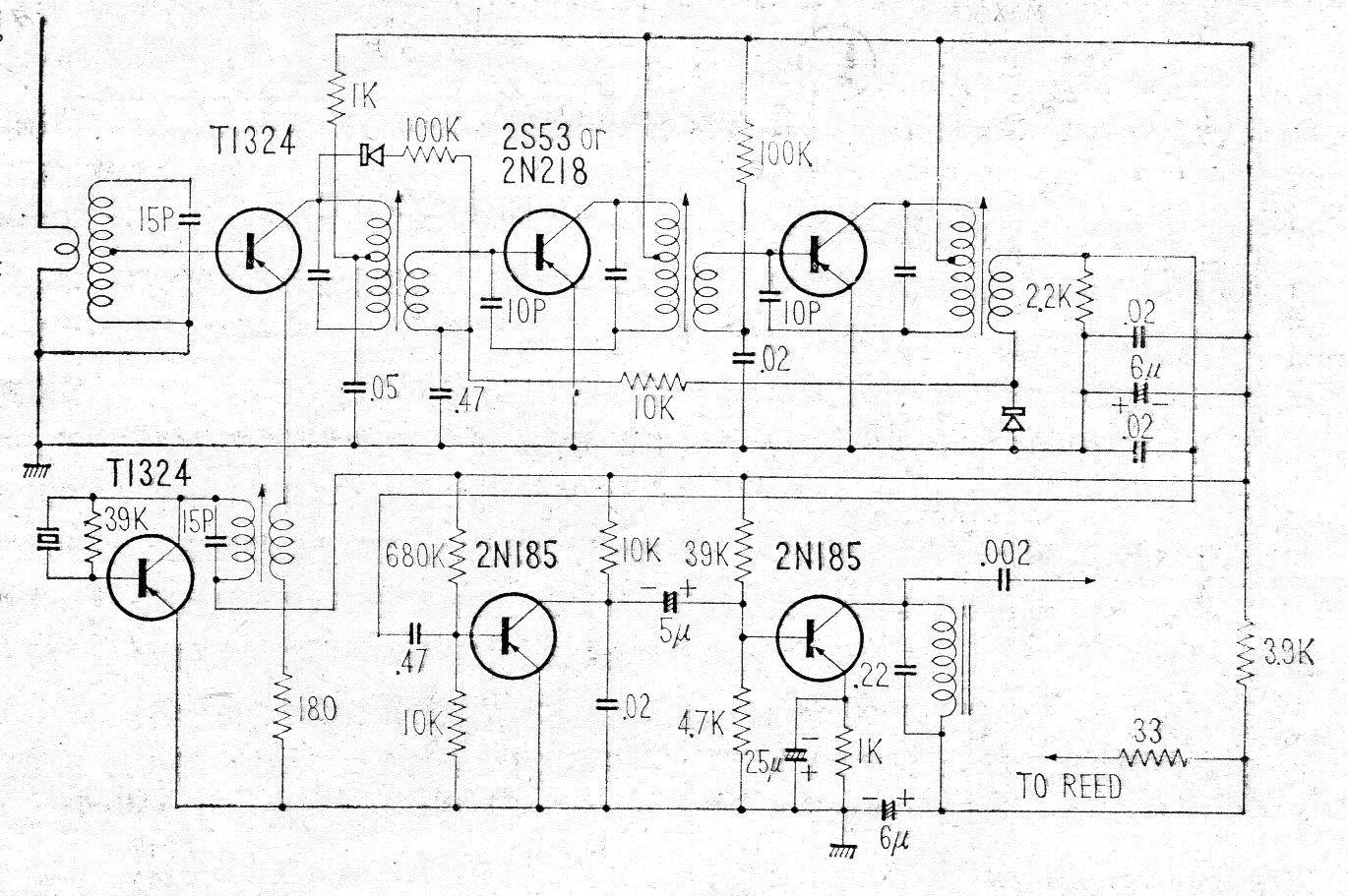 Este circuito es de una publicación japonesa de 1962. Los detalles de las bobinas no se dan y los transistores son de la época. El circuito acciona directamente un relé y está indicado para operar con transmisores de válvula de este sitio.
