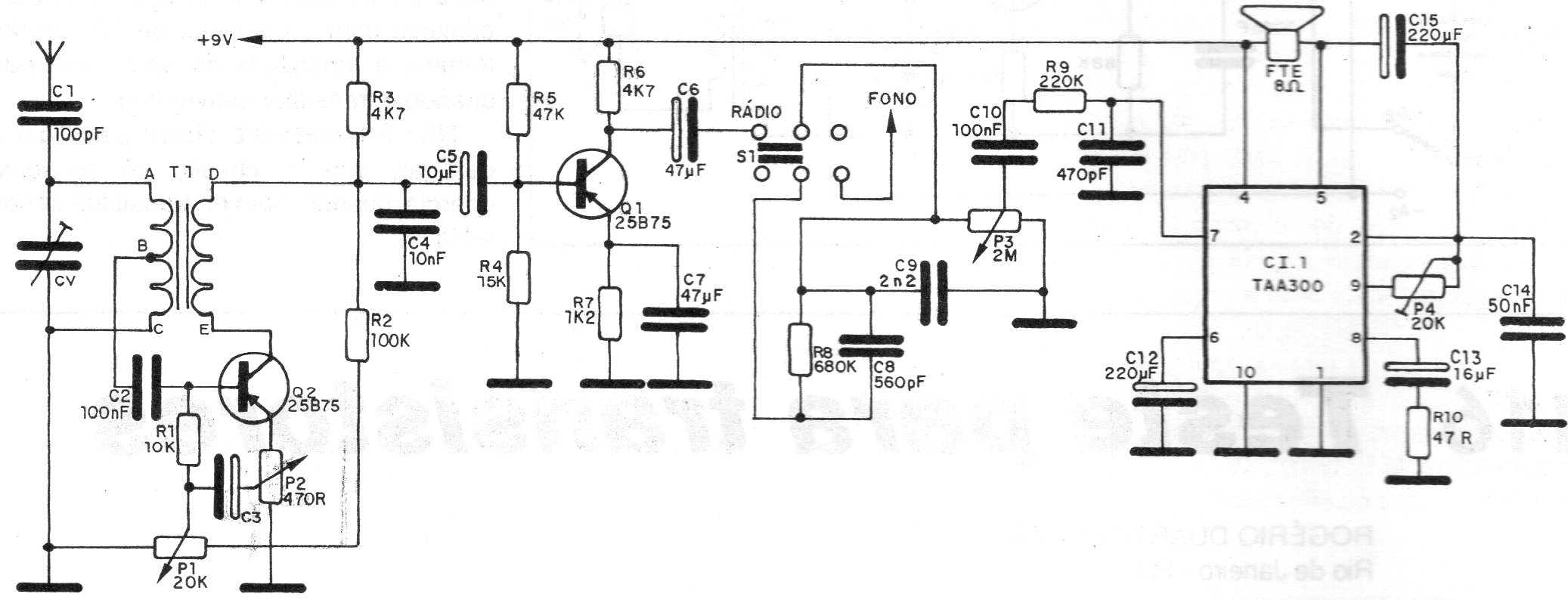 El circuito integrado utilizado en esta radio de 1987 no es muy común en nuestros días. Las bobinas se enrollan con hilo 27 y tienen las siguientes especificaciones AB-100 espiras, BC-50 espiras, DE-60 espiras. El circuito capta las estaciones de ondas medias debiendo ser alimentado por pilas o fuente.