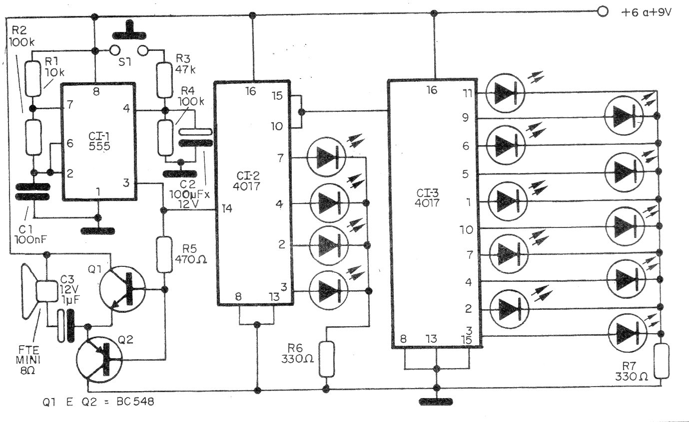 Este juego fue encontrado en una publicación de 1992. Se trata de un pequeño casino que tiene un sorteo 1 de 4 y una ruleta de 10 posiciones. Los dos combinados permiten obtener 40 combinaciones de juegos. El circuito es alimentado por pilas comunes o batería y los componentes usados todavía son comunes en nuestro mercado.