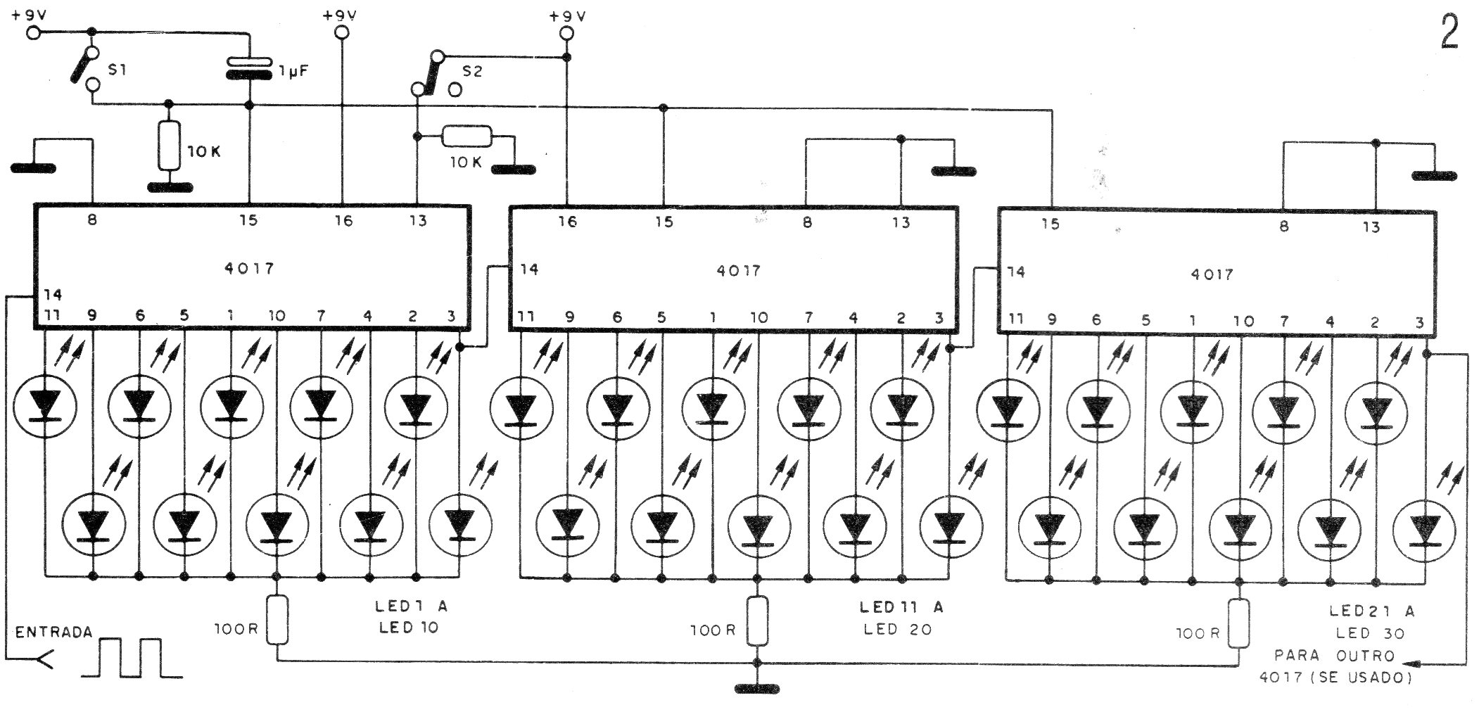 Este contador digital de pulsos ofrece una indicación por LEDs. Su frecuencia máxima es del orden de 5 MHz y la señal de entrada es rectangular, libre de repiques, y la alimentación puede ser hecha con tensiones de 5 a 12 V. El circuito es de una documentación antigua pero totalmente actual, pudiendo ser usado incluso como shield de control para microcontroladores.