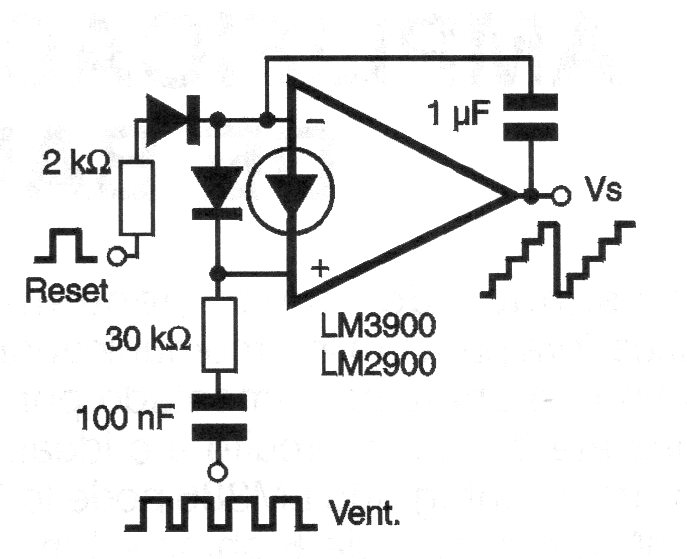 Este circuito, que aparece en otras aplicaciones de este sitio, fue retirado de una documentación de 2000 basada en el manual de National Semiconductor de la época. El circuito puede ser alimentado por tensiones de 6 a 12 V y para los componentes usados la señal de entrada debe ser de 1 kHz.