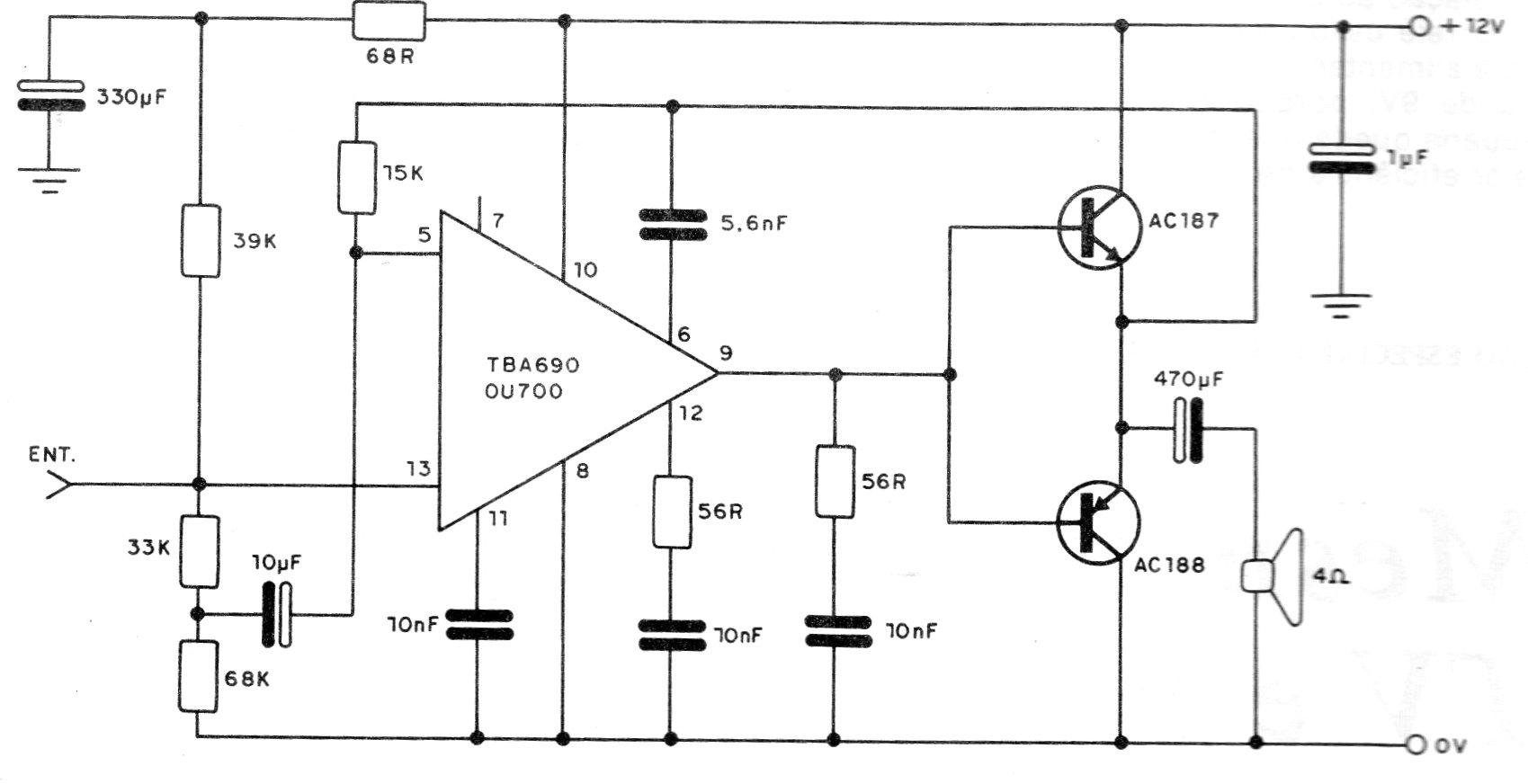 El circuito integrado utilizado en este proyecto de 1986 es poco común actualmente, pero la idea de la configuración de salida es válida aún hoy para ser usada con otros amplificadores. Los transistores usados en la salida también son antiguos, de germanio, no fáciles de encontrar. Se pueden utilizar los BD135 y BD136.