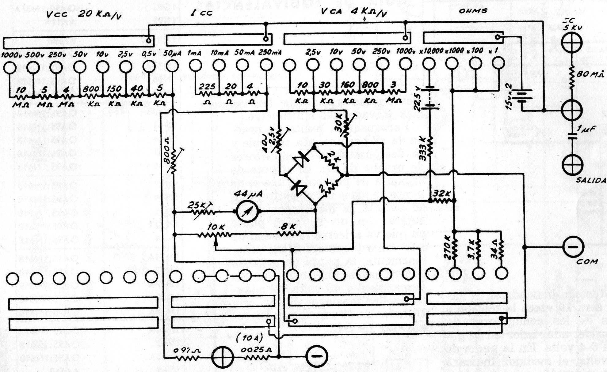 Para quien desea recuperar un multímetro antiguo de este tipo, el circuito presentado vale como referencia. Recordamos que todos los resistores son tipos de precisión. El circuito es extremadamente delicado exigiendo habilidad para una eventual reparación.