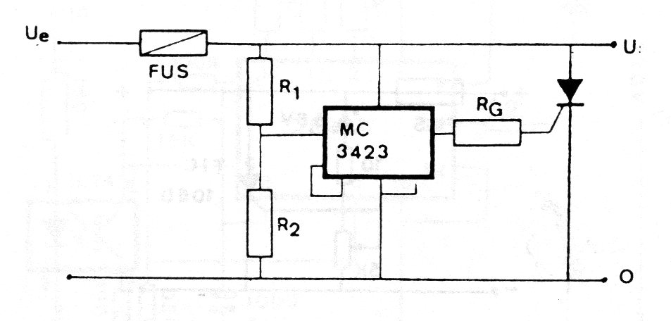 El amplificador operacional utilizado en este circuito no es común, pero puede ser probado equivalentes o incluso comparadores. El SCR dispara quemando el fusible cuando la tensión programa es superada. El circuito opera con tensiones de entrada de acuerdo con lo soportado por el amplificador operacional usado.