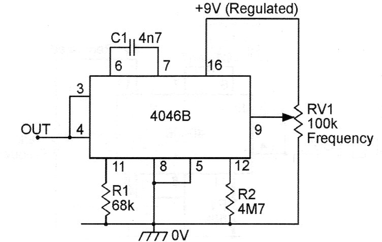 Este VCO con un circuito integrado CMOS 4046 genera señales cuya frecuencia superior depende de C1.R1 y la inferior de C1 (R1 + R2) fue encontrada en una publicación inglesa. Se puede utilizar como escudo para sensores y la alimentación puede estar entre 3 y 12 V. Podemos usarlo como un shield convertidor analógico (voltaje) en digital (frecuencia).