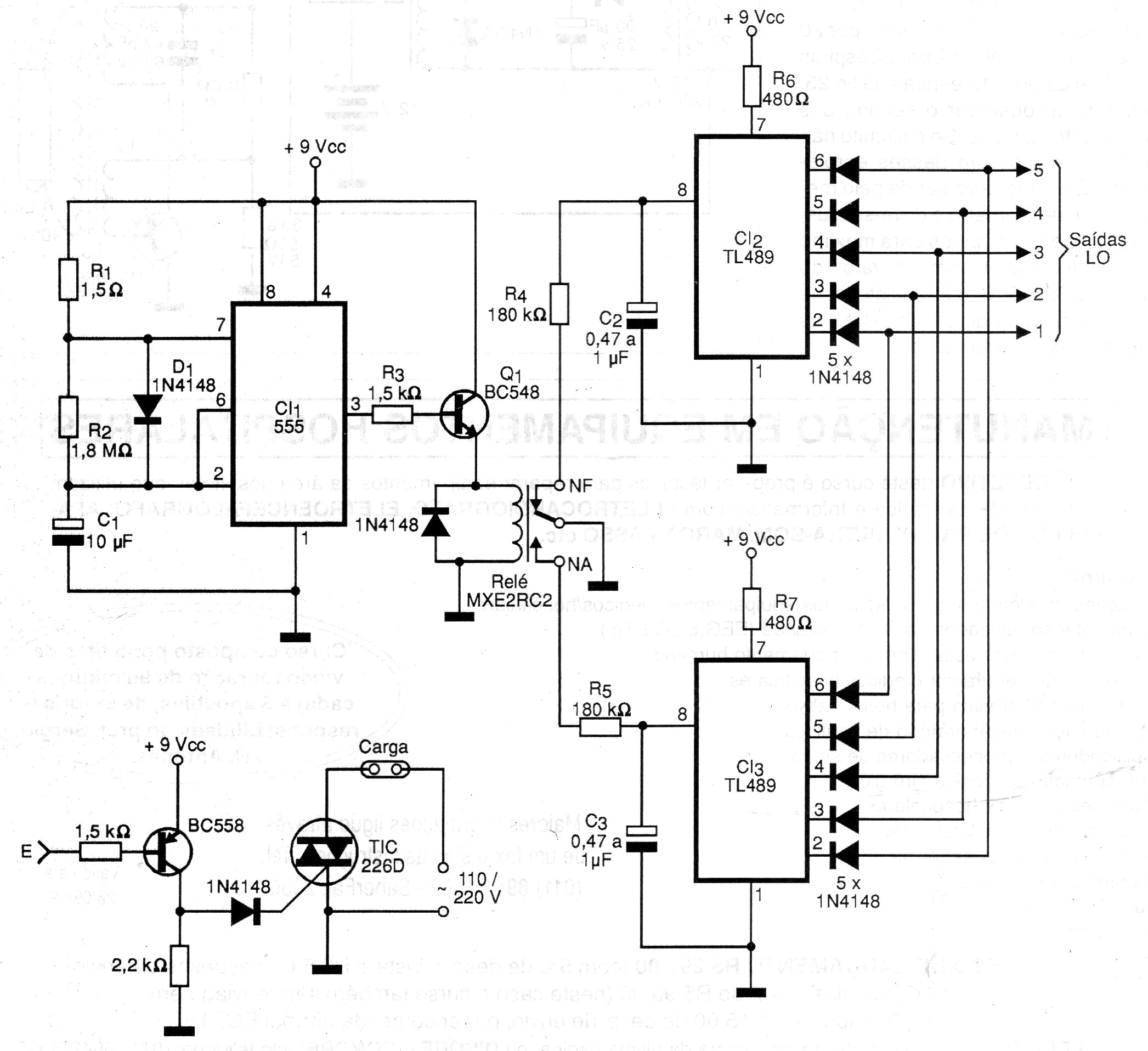 Este circuito controla dos válvulas solenoide de agua para irrigación programada por los diodos. Los tiempos de accionamiento se ajustan en P1 y otras configuraciones de diodos se pueden predecir. El circuito incluye una fuente de alimentación donde el transistor de potencia debe estar dotado de un disipador de calor.