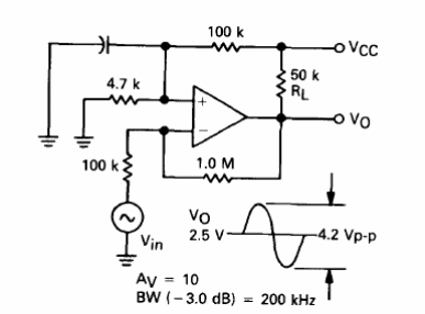 El circuito presentado tiene alimentación de 5 V y fue sugerido por el Linear Databook de Motorola de 1990. Se pueden utilizar amplificadores operacionales equivalentes.