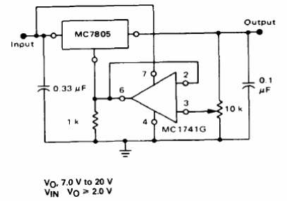 La serie 78xx es fabricada por diversas empresas de semiconductores que presentan ideas de uso en sus manuales. El circuito mostrado en la figura es del Linear Databook de Motorola de 1990. El amplificador operacional es el 741.