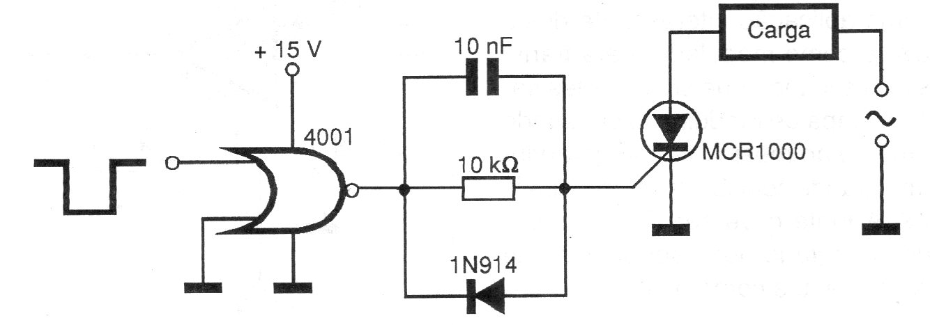 El MOS SCR MCR1000 es un componente raro actualmente. Se trata de un SCR con disparo por efecto de campo MOS, exigiendo un circuito especial para este propósito. El circuito es de una documentación de 1999. Una de las características de este SCR es su velocidad extremadamente rápida de disparo.