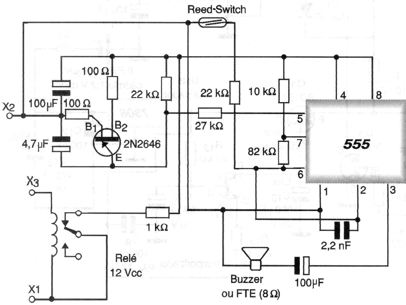 Si bien todos los coches modernos ya poseen este recurso, en la época en que este proyecto fue publicado, en 2000, eso no ocurría. En él tenemos un circuito accionado por un reed-switch colocado en el cinturón de seguridad. Si el carro se acciona sin que el imán esté cerca del reed en el cinturón, el dispositivo emite un sonido de sirena.