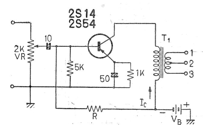Este circuito con un solo transistor se encontró en la documentación japonesa de la década de 1960. El transistor es de germanio y el circuito tiene un control de volumen. El transformador es de tipo miniatura y la ganancia es de 40 dB.