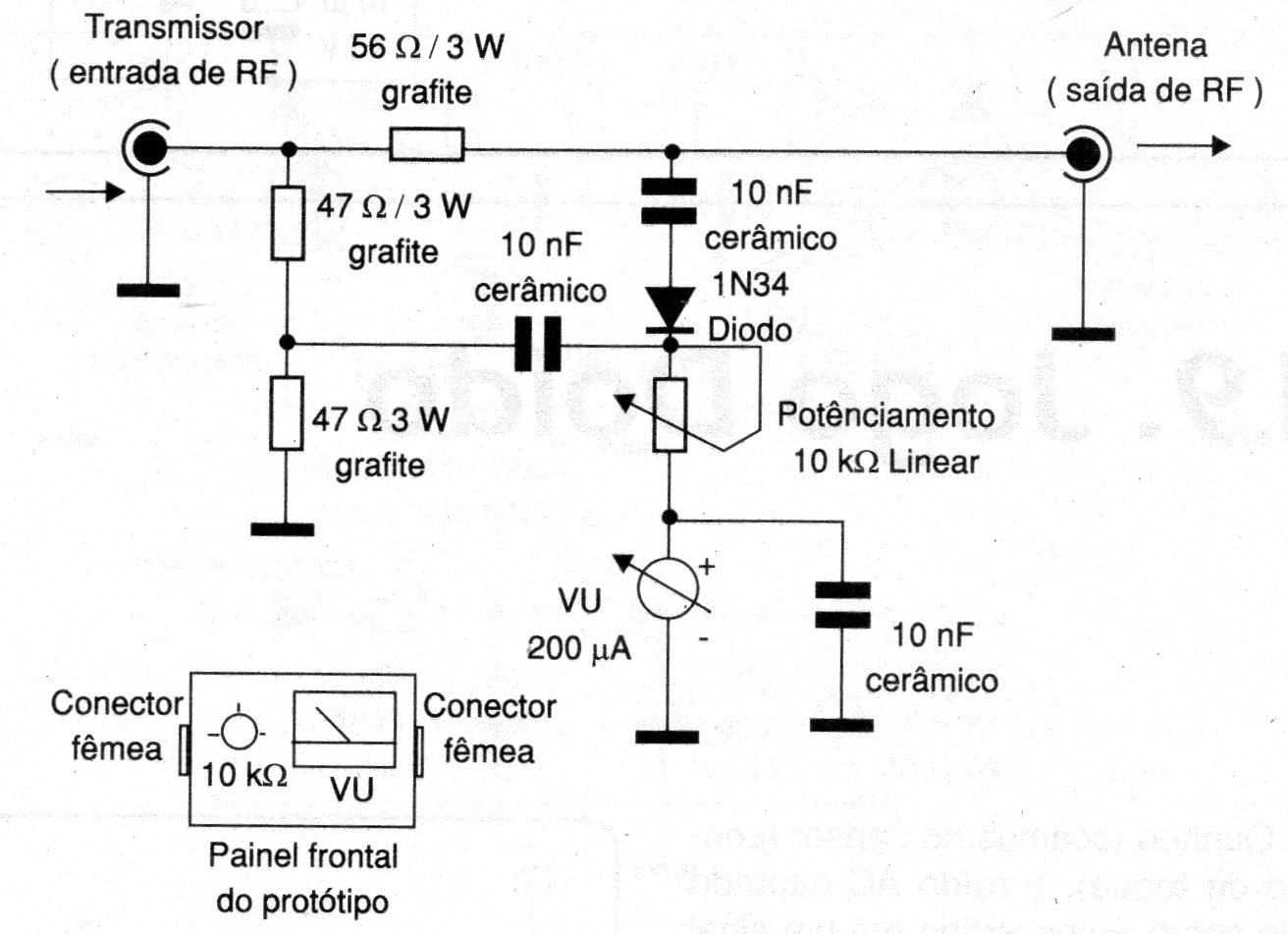 Este circuito está indicado para el rango de 11 metros, habiéndose encontrado en una documentación de 2003. El indicador puede ser una pequeña VU del tipo que se encuentra en los equipos de música antiguos. El ajuste se realiza en la olla. El circuito está alimentado por la propia señal.