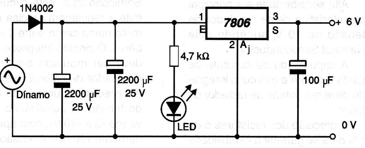 Este circuito puede proporcionar una corriente de carga máxima de 1 A. El circuito integrado debe tener un disipador de calor y los capacitores de 2.200 uF pueden ser reemplazados por una unidad de 4.700 uF o incluso de 10.000 uF. Estos valores no eran comunes en el momento de la publicación del proyecto (2001). Se pueden obtener otras tensiones cambiando el regulador.