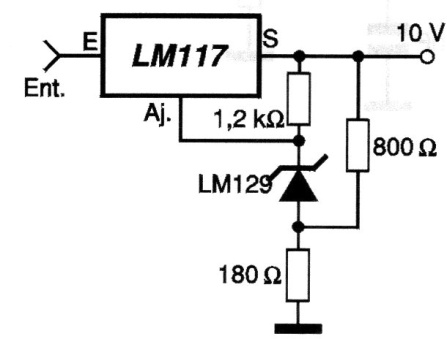 Este circuito es de un manual de National Semiconductor de los años 90, que utiliza un regulador integrado de 1,5 A que debe estar equipado con un disipador de calor. El zener de precisión no es un componente común en la actualidad.