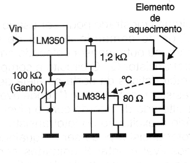 Esta configuración para corrientes de 3 A con una tensión de entrada máxima de 30 V aparece en otra parte de este sitio, basada en un circuito integrado de National Semiconductor. El LM350 debe estar equipado con un radiador de calor y el circuito del sensor es el LM334.