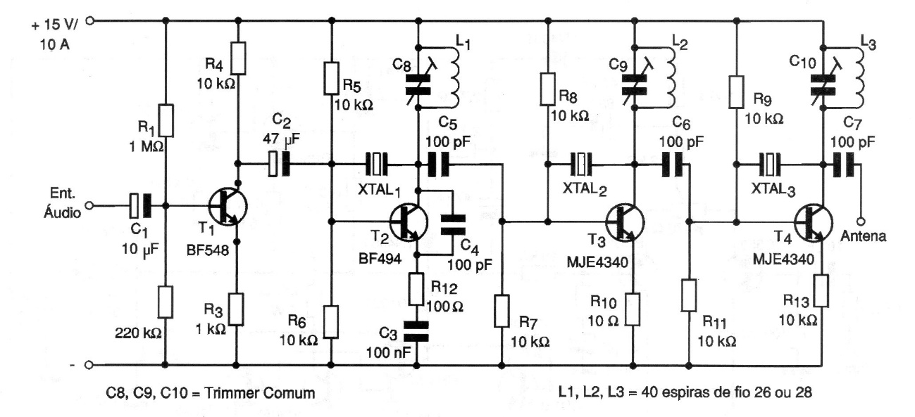 Este circuito es de la documentación de 2001. Los transistores utilizados en la etapa de potencia son críticos y deben estar equipados con disipadores de calor. No son fáciles de obtener hoy. La alimentación debe ser proporcionada por una fuente excelente y el ensamblador debe tener mucha experiencia con este tipo de circuito.