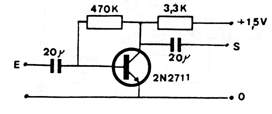 Esta configuración, bastante común y encontrada en otros sitios, es de documentación europea de los años 90. El transistor original puede ser reemplazado por un BC549. La energía alimentación de una sola pila común.