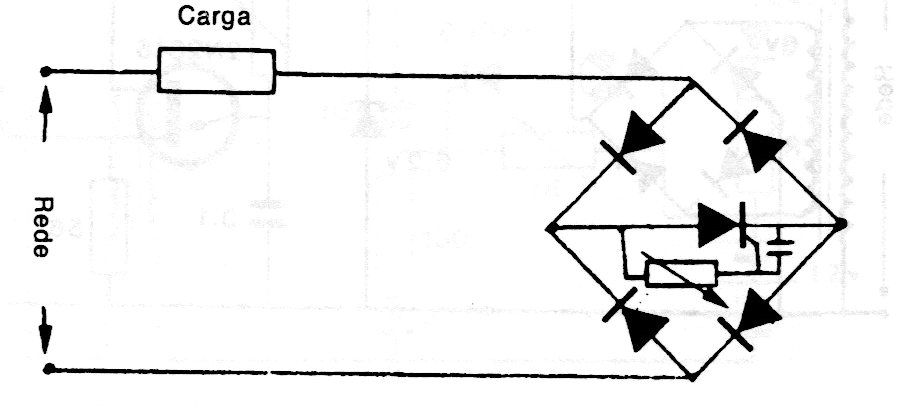 En el diagrama, de una documentación de los años 90, tenemos la forma de utilizar un SCR en un control de onda completo. Los diodos deben ser capaces de manejar la corriente de carga y el potenciómetro, en realidad representa el circuito de control externo.