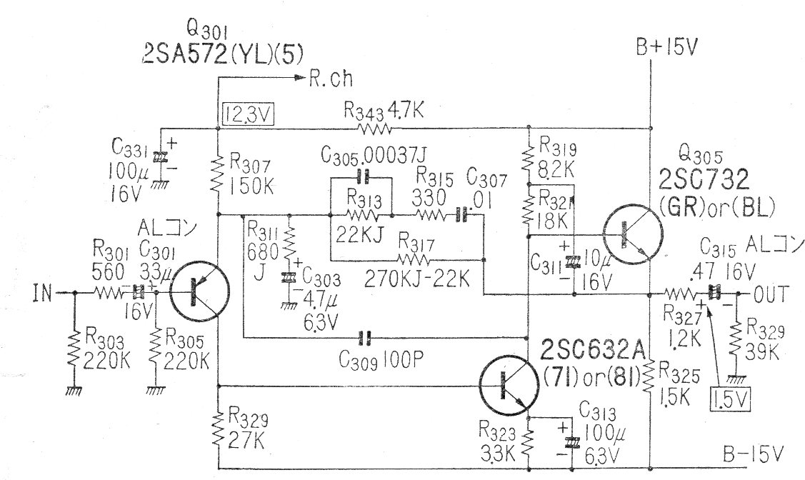 Este circuito es de una documentación japonesa de 1971, utilizando transistores de la época. El circuito está indicado para trabajar con el suministro de amplificadores juntos. Los transistores se pueden reemplazar con equivalentes modernos y el diseño de la placa es fundamental para la sensibilidad a los ronquidos.