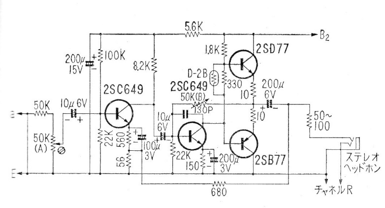 Este pequeño amplificador de auriculares con transistores de germanio se obtuvo en una publicación japonesa de 1968. La fuente de alimentación original es de 11 V, pero hay cierta tolerancia.