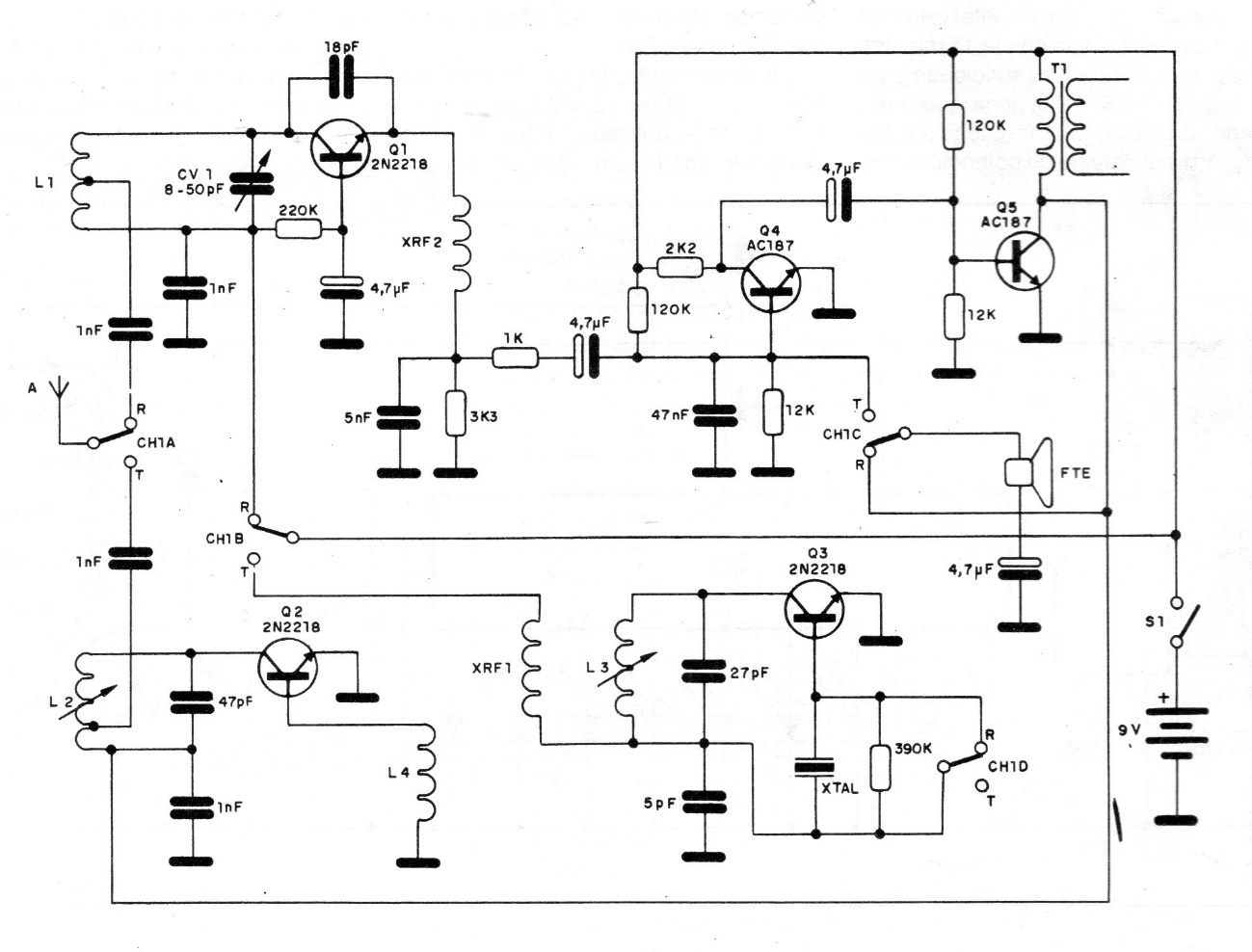 El alcance de este transceptor encontrado en una publicación nacional antigua es del orden de 1 km. Las bobinas tienen las siguientes características: