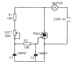 Este es uno de los muchos controles de motor universales que el lector puede encontrar en este sitio web. El circuito es de documentación de 1998 y el triac puede ser el TIC226 con disipador de calor. El potenciómetro puede ser de 47 k.