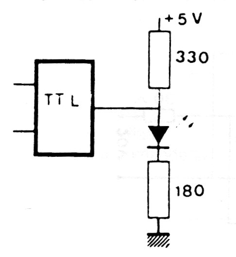 Este simple circuito indica el nivel de señal presente en la salida de una función lógica. El circuito es de una documentación antigua.