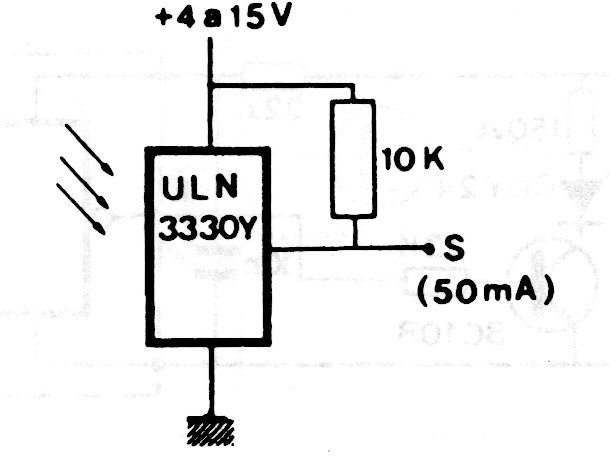Obtenido en una documentación de los años 80, este circuito hace uso de un sensor raro actualmente. El circuito puede excitar directamente cargas de hasta 50 mA cuando es alimentado por tensiones en el rango indicado.