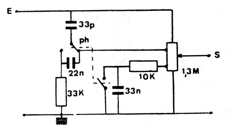 Esta red pasiva se coloca en la entrada de amplificadores de audio para hacer la corrección del rango pasante de señales de acuerdo con la sensibilidad de oído humano. Se deben compensar las pérdidas y el potenciómetro es de tipo poco común, con toma.