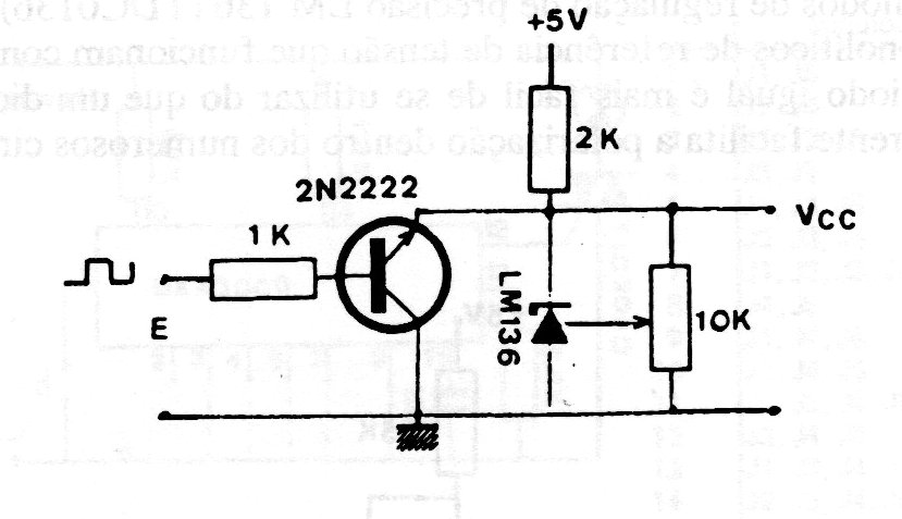 Este circuito produce pulsos con tensión limitada y con precisión que depende del integrado usado. Esta tensión de referencia, que puede ser pulsante se ajusta en el potenciómetro. El circuito es de una documentación europea antigua.