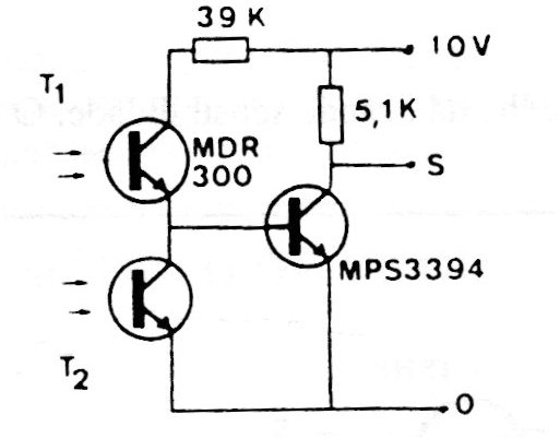 En la figura tenemos una función lógica en que uno de los transistores debe quedar iluminado para la salida ser 0 e invirtiendo la condición la salida será 1. Con los dos iluminados o en la oscuridad, la salida será indefinida.