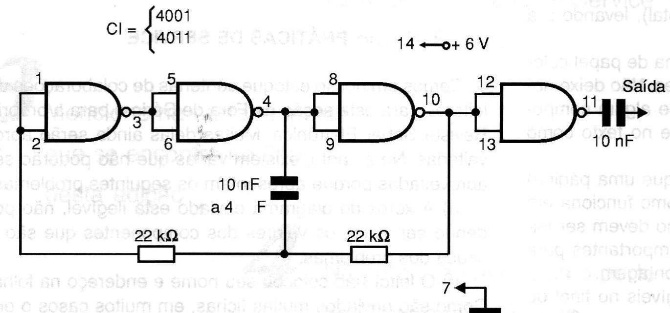 El inyector de señales ilustrado en la figura utiliza un único circuito integrado y genera signos rectangulares ricos en armónicos. La alimentación puede ser hecha con tensiones entre 5 y 12 V, pero sugerimos 6 V, lo que corresponde al uso de 4 pilas comunes. El negativo de la inyección es el polo negativo de las pilas, y el capacitor puede ser alterado para que se obtenga una frecuencia conforme la aplicación deseada.