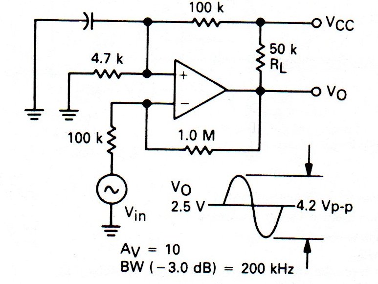 Este circuito de un manual antiguo utiliza amplificadores del tipo MC33171 y similares, pero puede ser implementado por equivalentes más modernos. El circuito es alimentado por una fuente simple de 5 V que puede utilizarse como shield. La banda pasante para 20 dB es de 200 kHz.