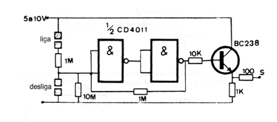 Este circuito puede ser utilizado como un shield de entrada retirando la señal directamente de la segunda puerta, o accionando un circuito de mayor potencia con el transistor BC548 en lugar del BC238 original. El circuito es de una documentación de los años 70 y para ser utilizado como escudo la alimentación debe ser hecha con 5 V.
