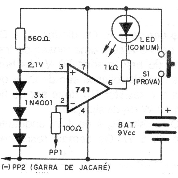 Este circuito fue encontrado en una documentación de 1995. Su finalidad es indicar niveles de tensión que son determinados por la referencia dada por los diodos. El circuito no necesita una fuente simétrica.