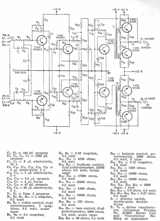Este circuito, que tiene con elementos críticos los transformadores, fue encontrado en el manual de transistores de la RCA de 1964. El circuito utiliza transistores que ya no son fáciles de obtener, pero que admite equivalentes.