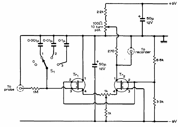Encontramos este circuito en una documentación técnica de los años 70. Cualquier MOSFET de doble coma puede ser usado. El circuito tiene una elevadísima resistencia de entrada siendo indicado para aplicaciones en instrumentación. La ganancia es de 70 dB.