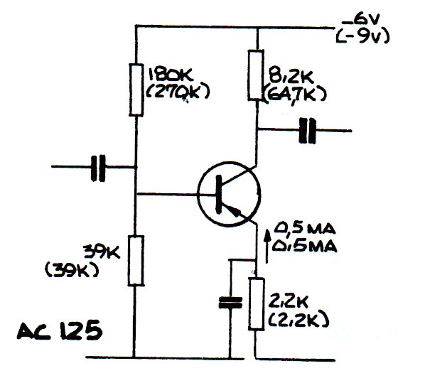 Esta etapa de amplificación es de un libro de circuitos de 1985. El circuito es alimentado por tensiones de 6 a 9 V y la carga es resistiva. El circuito se puede utilizar como pré amplificador.