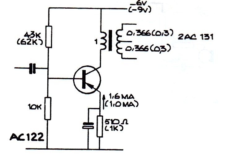 Este paso amplificador con un transformador de salida proporciona una fracción de watts. Encontramos en una publicación de 1985. El transistor usado es tipo de época de germanio.