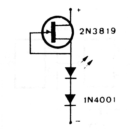 En la figura tenemos el modo de implementar una fuente de corriente constante para un LED usando un FET como el BF245. El circuito es de una documentación de los años 80.