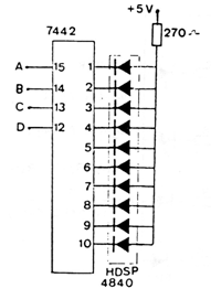 Podemos determinar el LED que va a encender desde un mando lógico, por ejemplo, en un shield con microcontrolado usando este circuito. La corriente en los LED es determinada por el resistor y la alimentación debe ser hecha con 5 V. Los diodos pueden ser de uso general.