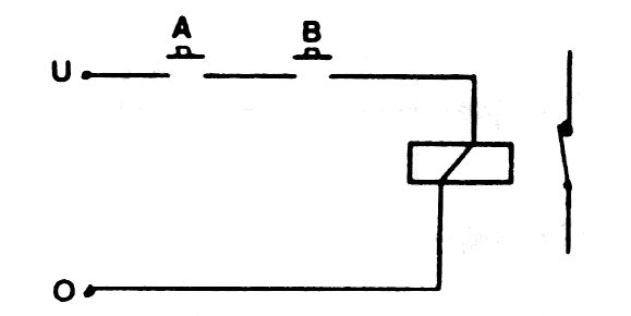 Esta función se implementa utilizando los contactos C y NF del relé. En la figura tenemos el modo de conectar los sensores o interruptores y abajo la tabla verdad.