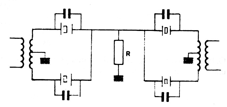 Esta configuración de filtro utilizado en las telecomunicaciones utiliza 4 cristales Jaunasann que es interesante para bajas y medianas frecuencias. El circuito es de una documentación de los años 80.