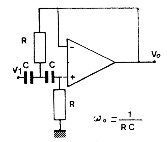 Los componentes de este filtro se calculan mediante la fórmula dada junto al diagrama y se puede implementar con prácticamente cualquier amplificador operacional como el 741 y sus equivalentes. La fuente debe ser simétrica.
