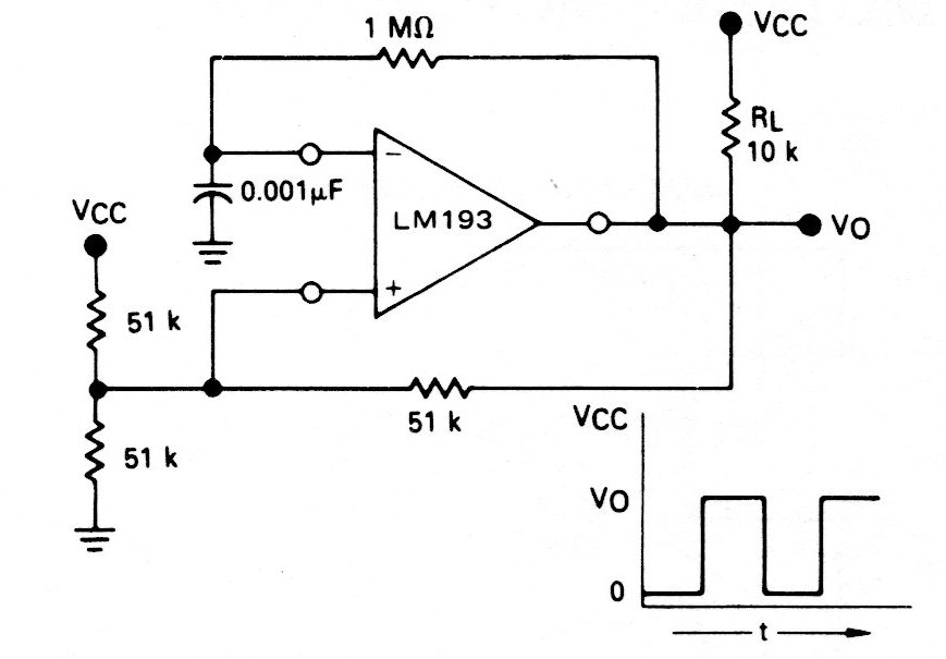 El operacional utilizado no es muy común actualmente, pero el circuito se puede implementar con otros, por ejemplo, el 741. La fuente depende del tipo y la frecuencia del capacitor.