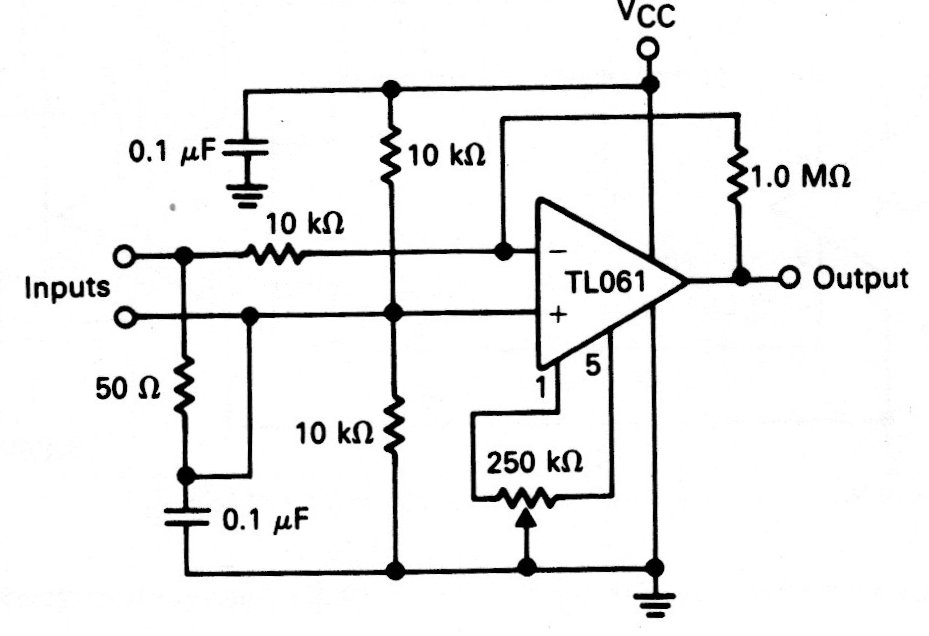 Esta es la configuración básica para este amplificador con FET y sus equivalentes como los RL082 y TL084 (versiones dobles y cuádruples). El circuito debe alimentarse por fuente de 3 a 12 V.