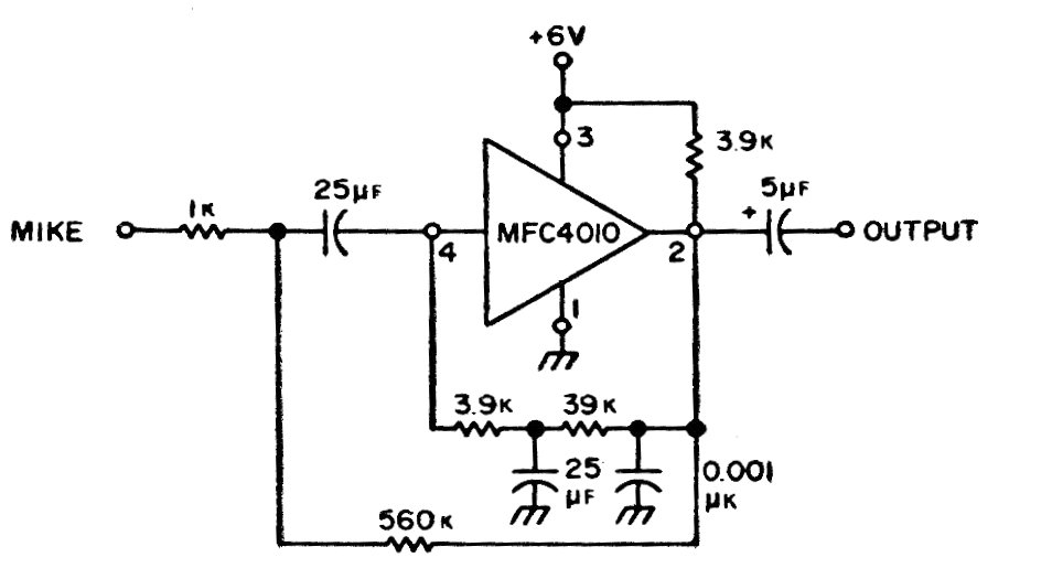 El circuito integrado MFC4010 de Motorola es poco común en el mercado actualmente, pues la aplicación es de una documentación de 1975. Sin embargo, la configuración se puede adaptar a los operacionales modernos.