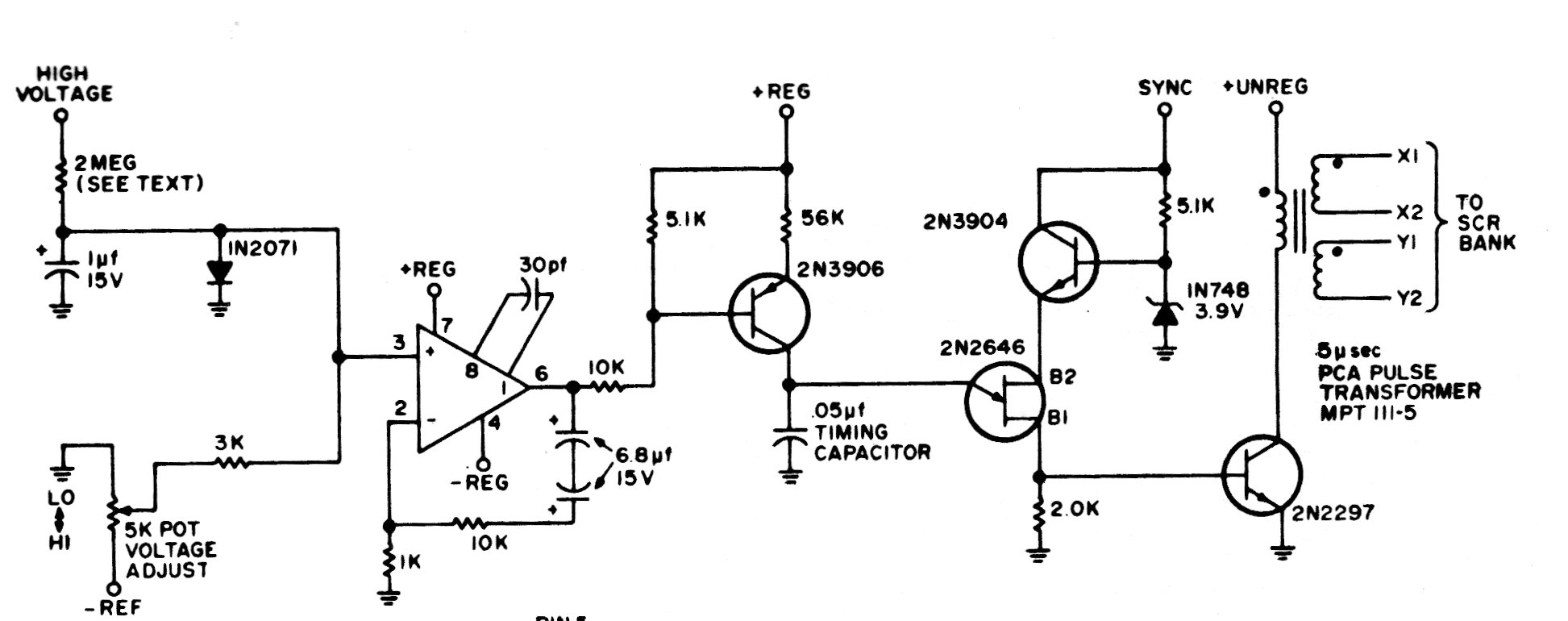 Este circuito se encuentra en una documentación antigua. Los componentes pueden ser reemplazados por modernos. El circuito se utiliza en controles de potencia.