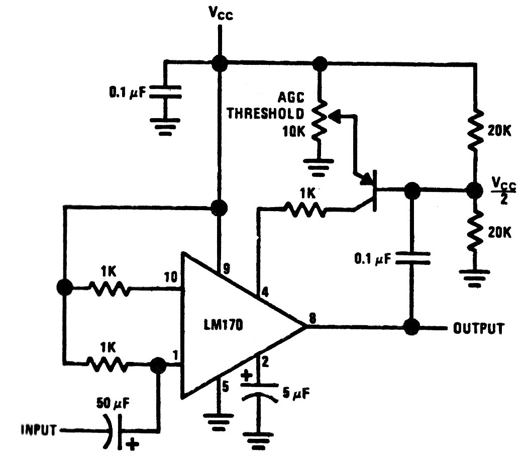 Encontramos este circuito en un manual de circuitos de 1975. El amplificador operacional es de tipo antiguo, pudiendo ser sustituido por equivalente moderno. La fuente no necesita ser simétrica y el transistor es de uso general.