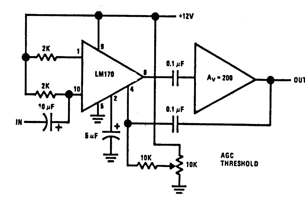 Encontramos este circuito en una documentación de los años 70. El circuito utiliza amplificadores de la época, pero puede ser implementado con equivalentes modernos. La alimentación no necesita srer simétrico.
